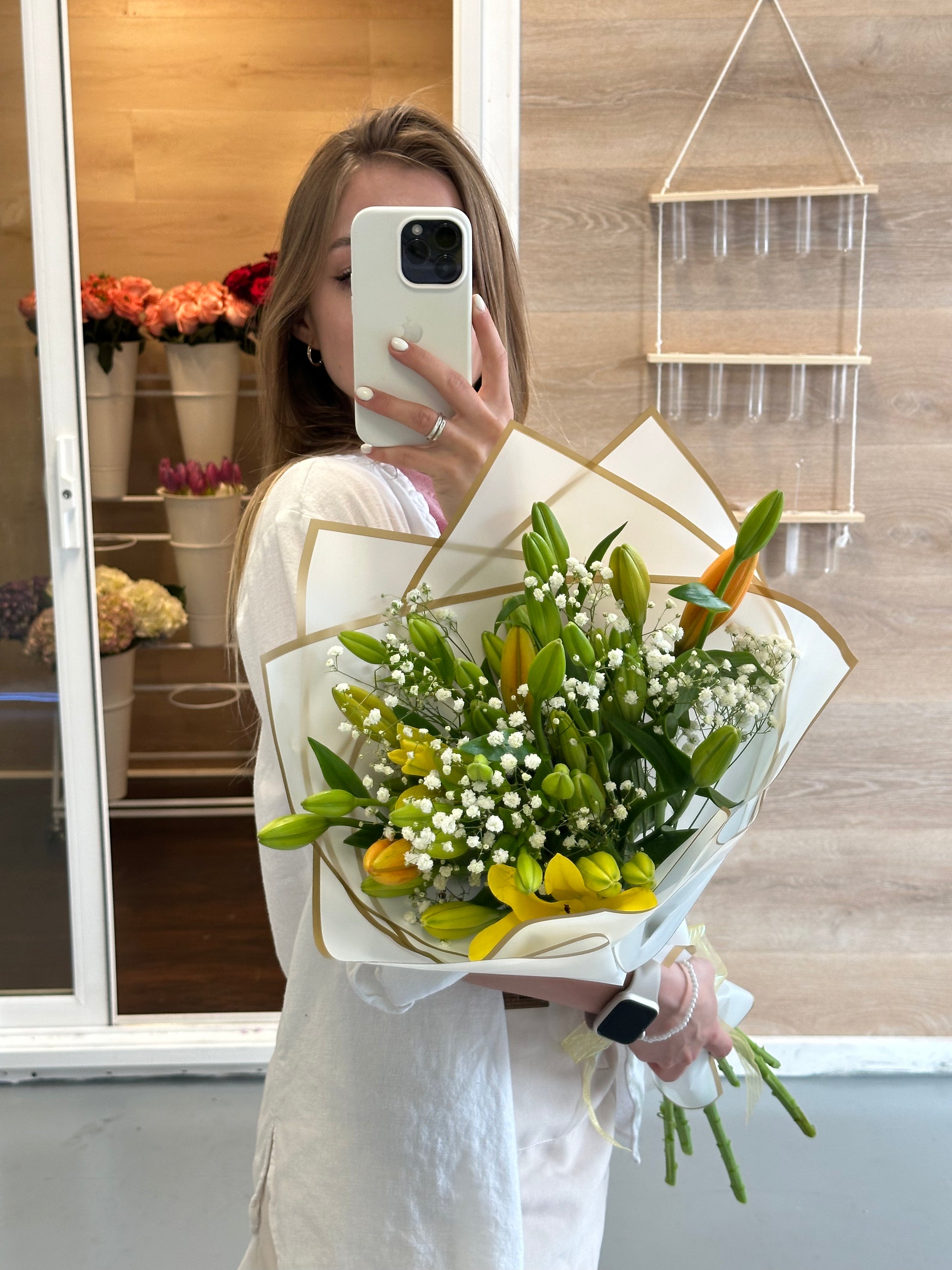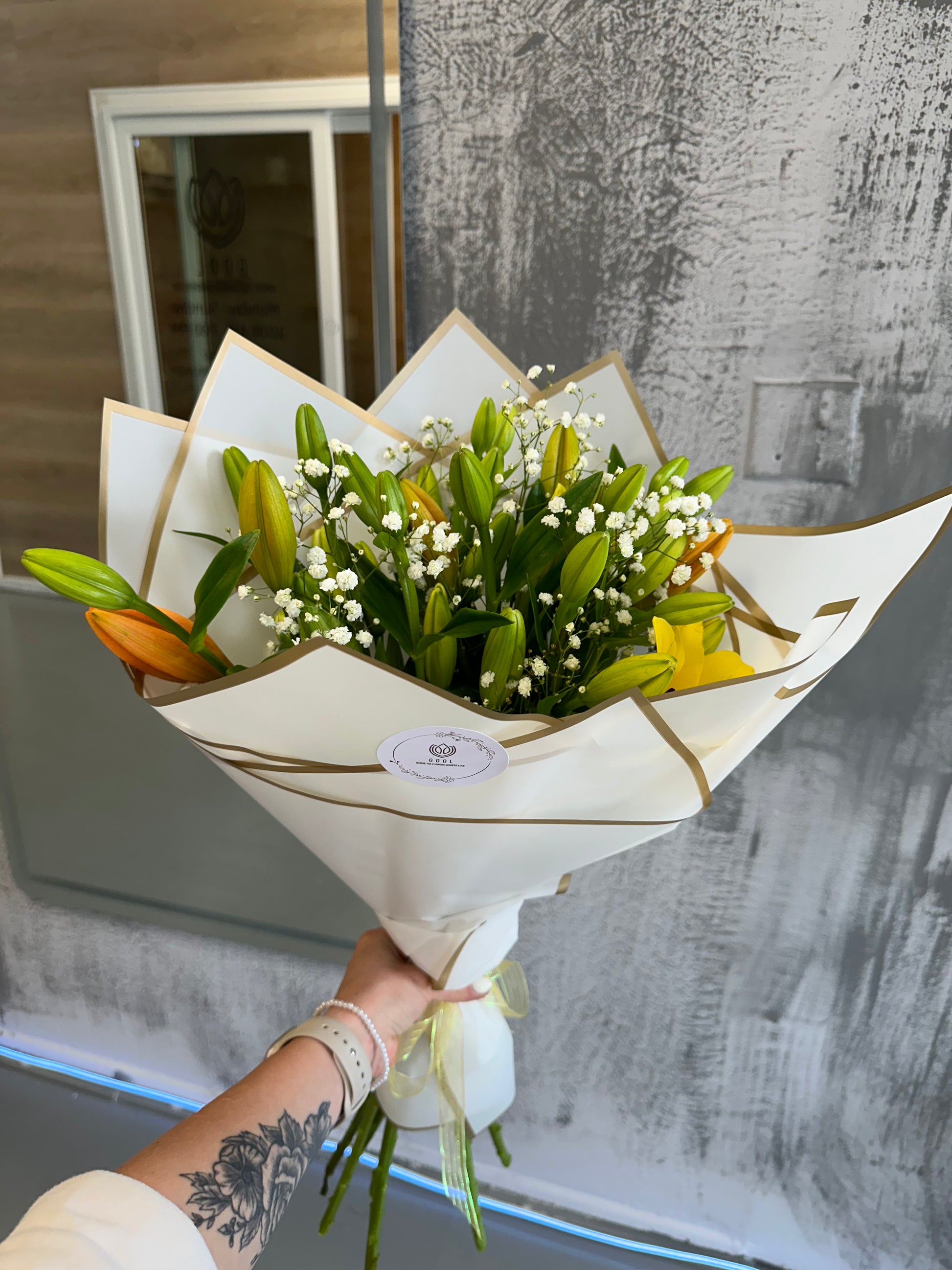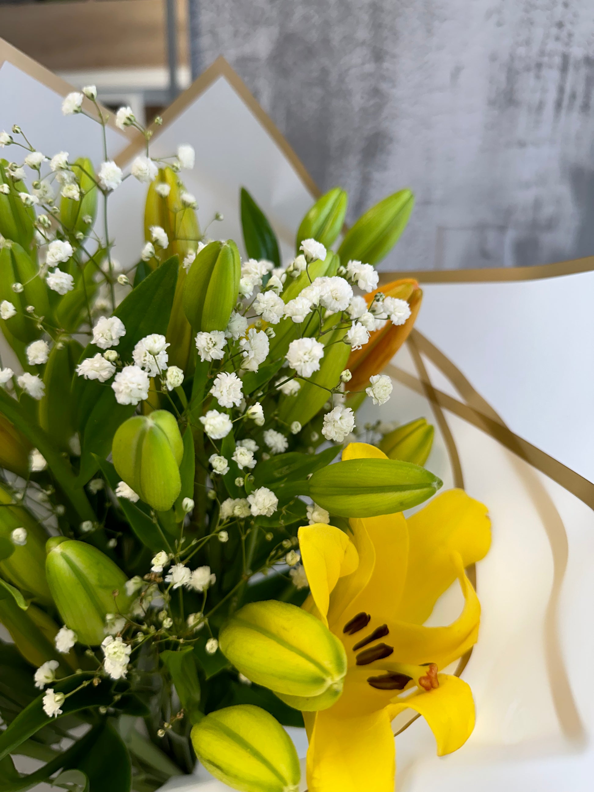 Deléitese con la belleza y elegancia de nuestro Ramo de Lirios Exuberantes. Cada ramo presenta impresionantes lirios que seguramente alegrarán cualquier habitación y capturarán tu corazón. Perfecto para cualquier ocasión, este ramo es una representación atemporal del amor, lo que lo convierte en un regalo ideal para sus seres queridos.